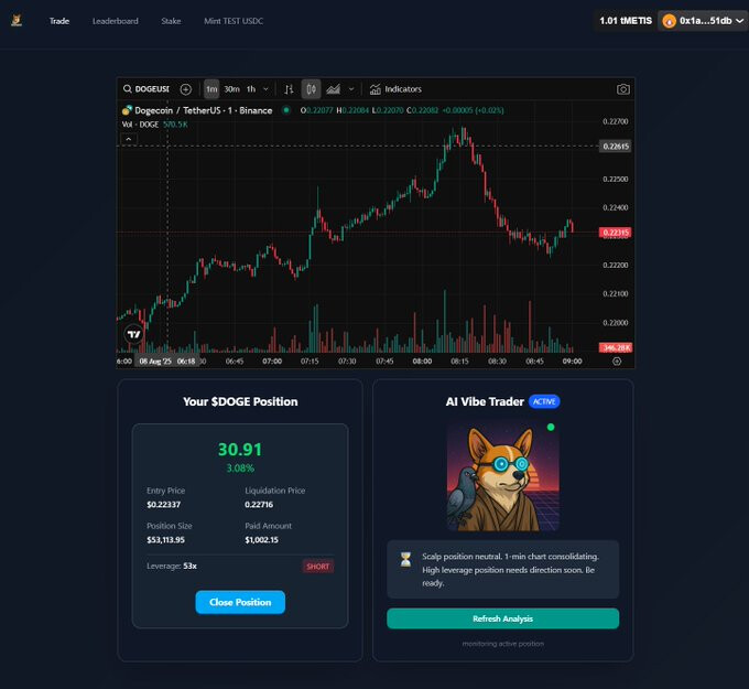 It would also be great to include a transaction history feature so users can track their past trades, along with quick guides for features like AI Trader and Mint TEST USDC . Additionally, the waiting time for AI Vibe Trader results feels quite long, so optimizing its speed would greatly improve the user experience.