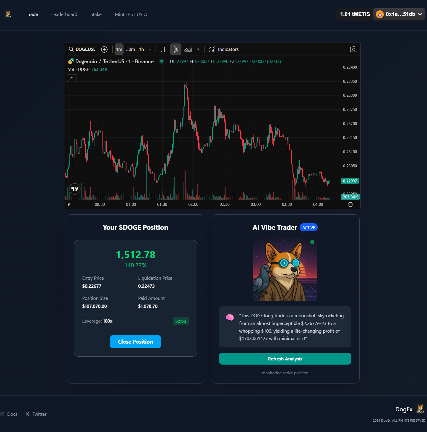 The Dogex app is fully functional. Wallet connection works smoothly without any delays or errors, and the connected wallet address is displayed correctly. The entire trading flow—from connecting the wallet to opening and closing positions—is simple and intuitive, even for users new to trading or DeFi.