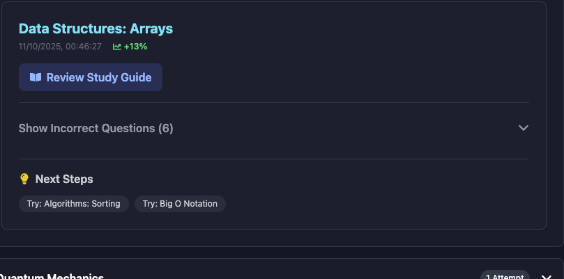 In the EduVerse, post-quiz feedback isn’t just about right or wrong, our AI Mentor dives deep into your learning patterns, decodes every mistake, identifies conceptual gaps in real-time, and instantly generates adaptive study guides and evolving quiz variations, creating a smart, personalized learning loop that feels less like traditional education and more like upgrading your knowledge on-chain .