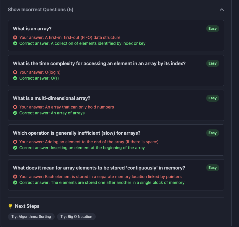 AI feedback will let you review the study guide so that you can improve your score and knowledge.