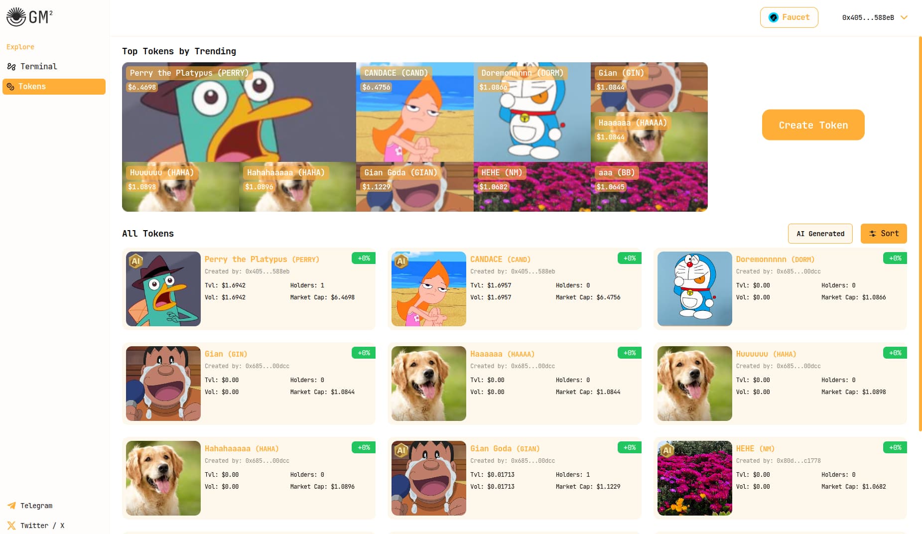 GM² Degen is a no-code terminal for launching meme tokens on Hyperion, with built-in AI to lower entry barriers and boost engagement.