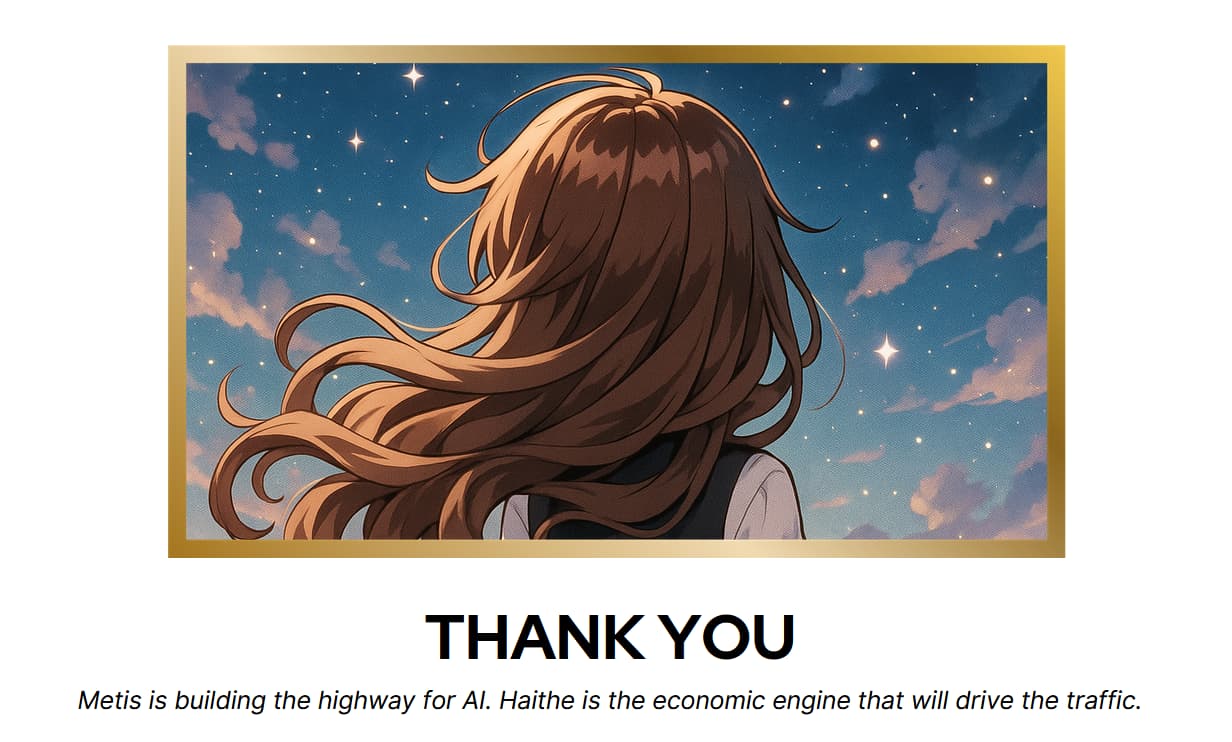 Haithe represents the future of AI development: decentralized, composable, monetizable, and accessible to everyone. By breaking down the silos of traditional AI and empowering a global community of creators, we are building more than just a platform; we are fostering an ecosystem. By harnessing the security and efficiency of the Metis L2 blockchain, Haithe provides the essential infrastructure for the next generation of intelligent, autonomous, and transparent AI applications. We invite you to join us in building this open and collaborative future.