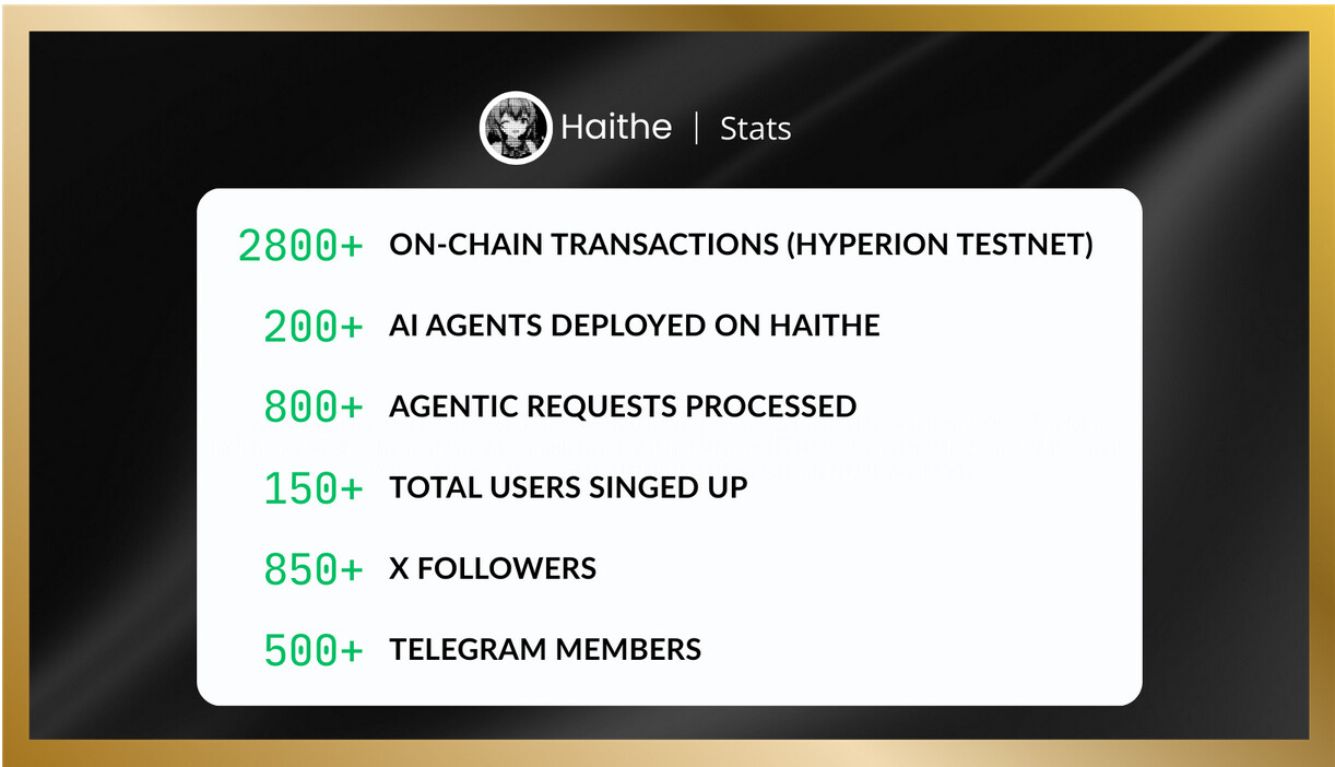 We launched Haithe on the Hyperion Testnet followed by our spotlight campaign to validate our core assumptions. The initial response has exceeded our expectations. Here are some stats: