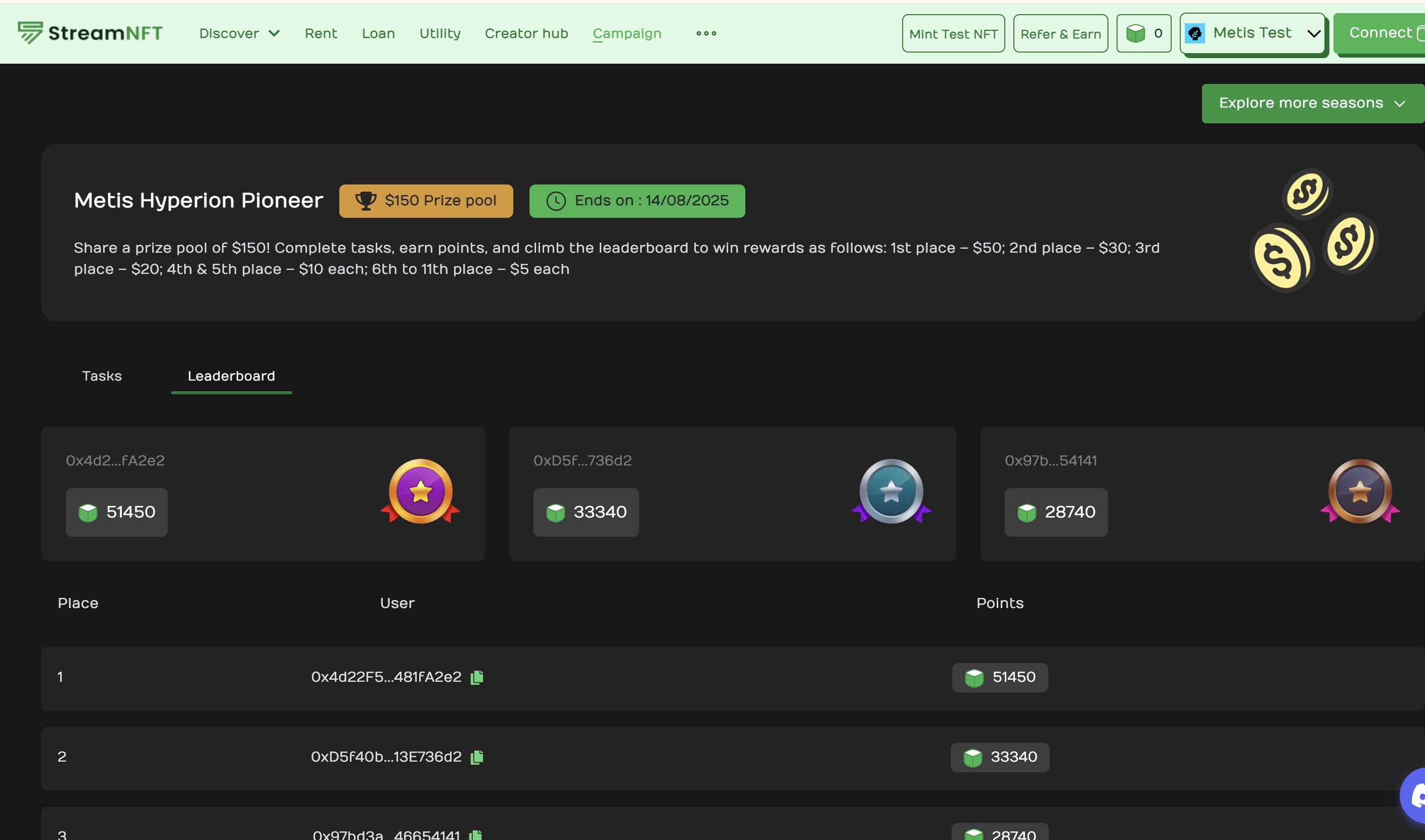 Live Link: https://testnet.streamnft.tech/launchpad/metis%20test