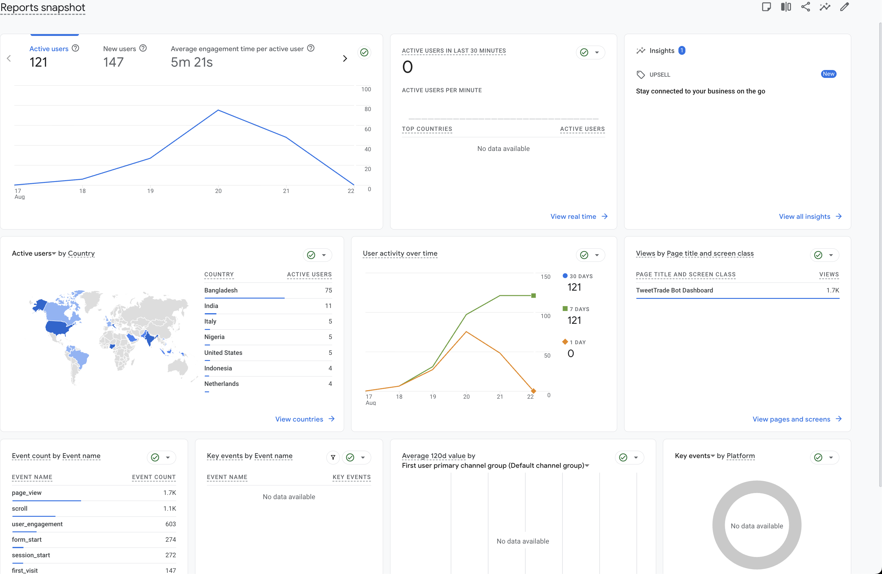 Please Note the Google analytics data only indicates partial data since our Main CTA is directly through twitter and not Dashboard.